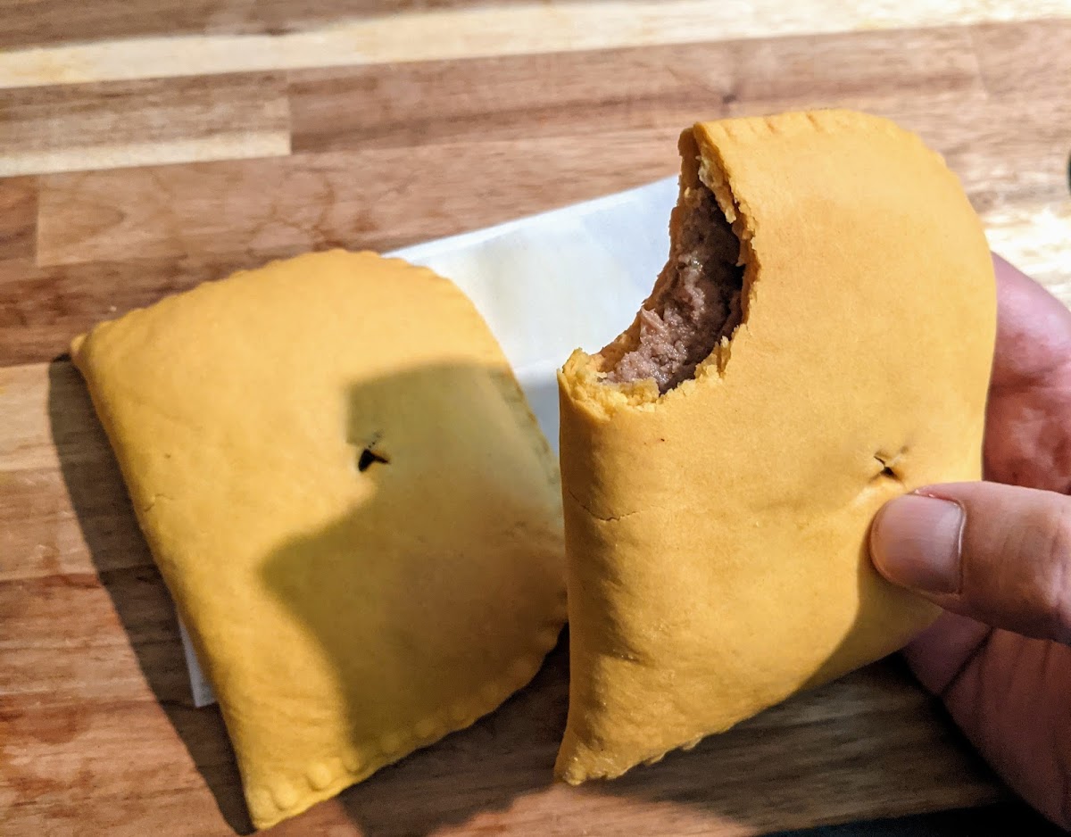 Beef Patty: A golden, flaky pastry filled with seasoned beef that's perfectly spiced for that unique Caribbean flavor. It’s the perfect snack or light meal.